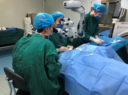 李院長(zhǎng)為患者進(jìn)行白內(nèi)障手術(shù)